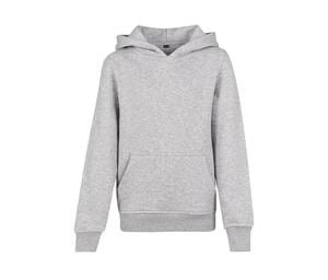 Build Your Brand BY117 - Heather Grey - Cozy Kids Cotton Blend Hoodie with Kangaroo Pocket