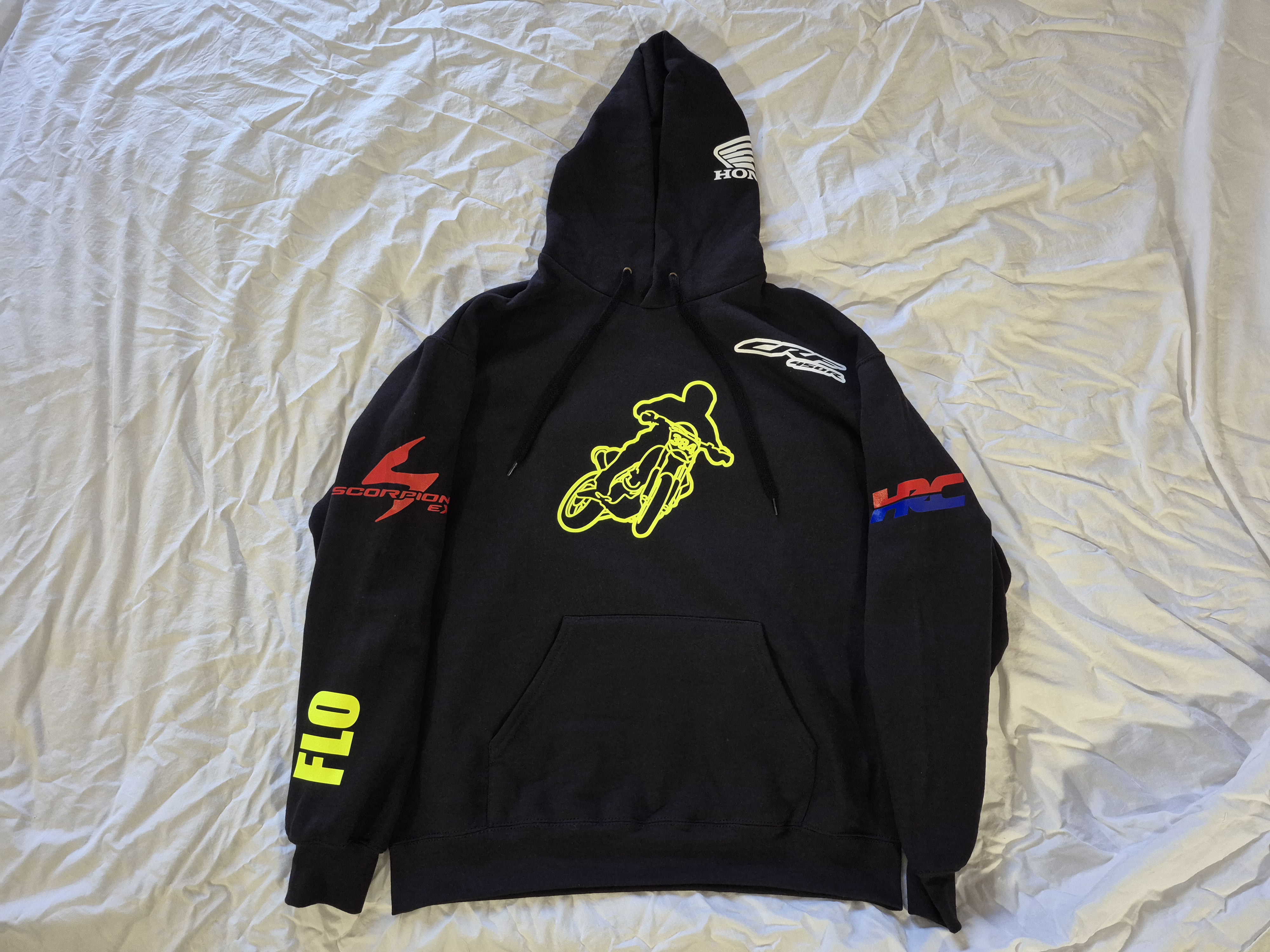 • Tonal flat drawstring and kangaroo pocket