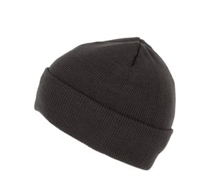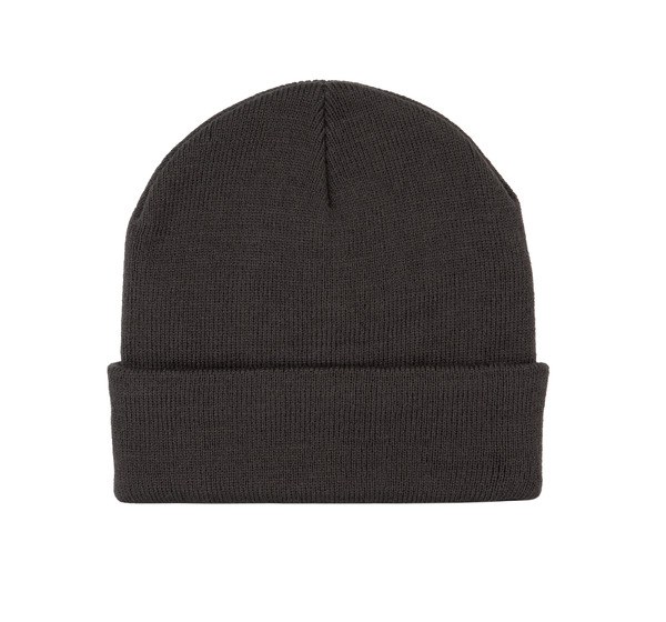 Knitted turn-up beanie made from 50% acrylic and 50% recycled polyester.
