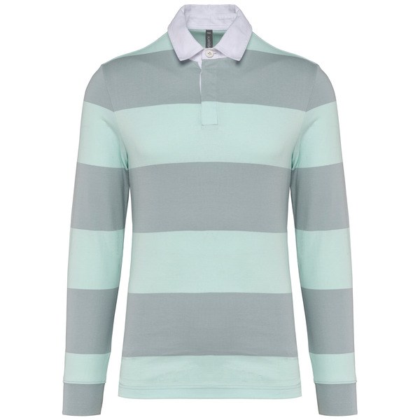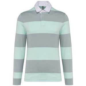 Kariban K285 - Light Grey / Ice Mint Stripes - Unisex long-sleeved striped polo shirt