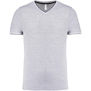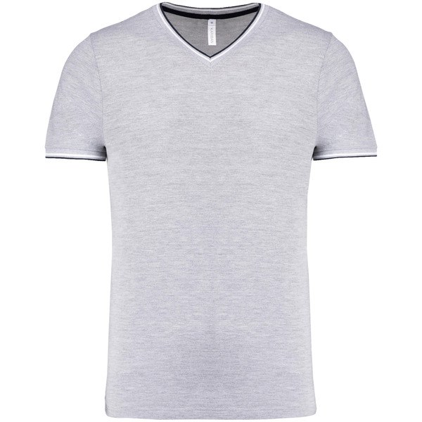 Kariban K374 - Oxford Grey / Navy / White - Men's piqué knit V-neck T-shirt