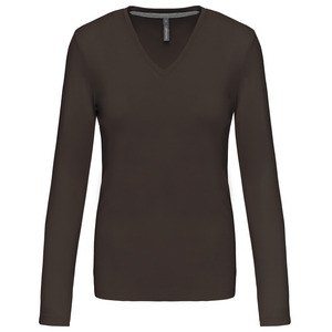 Kariban K382 - Chocolate - LADIES' LONG SLEEVE V-NECK T-SHIRT