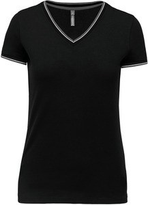 Kariban K394 - Black/ Light Grey/ White - Ladies’ piqué knit V-neck T-shirt