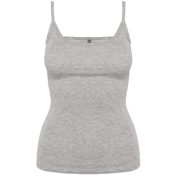 95% cotton / 5% elastane. Jersey knit fabric in combed cotton. Fine straps and feminine fit. Piping at the neckline and twin needle finish at hem.