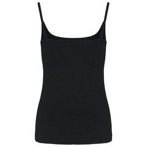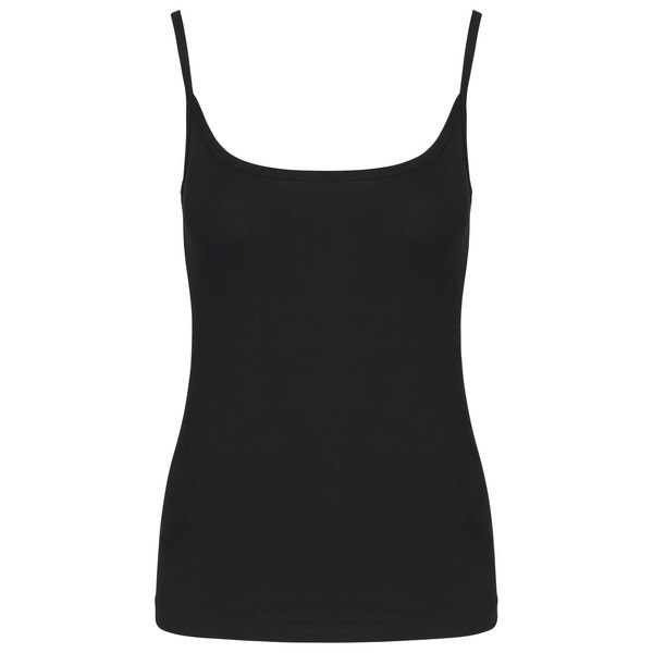 95% cotton / 5% elastane. Jersey knit fabric in combed cotton. Fine straps and feminine fit. Piping at the neckline and twin needle finish at hem.