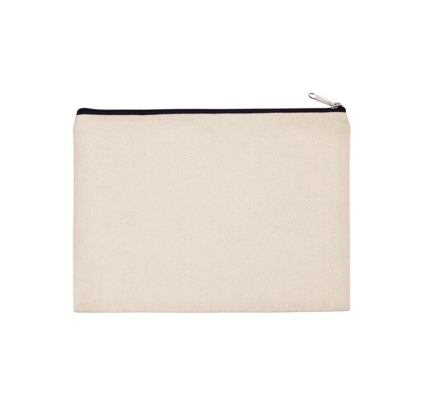 It's made of cotton canvas, so it's sturdy, and its simple rectangular shape with a contrasting zipper closure makes it appealing.
