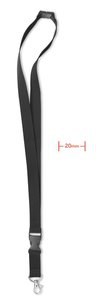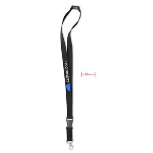 Premium 20mm lanyard with metal hook and safety breakaway for secure identification. This durable neck strap features a detachable buckle and a safety release mechanism. Measuring 2x56cm, it is designed for both professional events and daily workplace use. The 20mm width offers a significant surface for custom branding, making it suitable for screen printing or digital transfers. Available for bulk orders, it is a high-quality blank accessory for organizations and promotional agencies.
