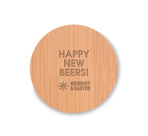 Bamboo bottle opener and coaster combo made from eco-friendly material for dual-function utility in bars, homes, or as a sustainable promotional gift. This versatile accessory combines a classic bottle opener with a protective coaster, crafted from natural bamboo for a minimalist and organic look. Measuring Ø7.8x1cm, it is compact enough for event giveaways while providing a sturdy surface for drinks. As a natural product, each item features unique grain patterns and slight color variations, adding a bespoke feel to every piece. It is perfectly suited for blank use in hospitality or as a high-quality canvas for custom branding through laser engraving or pad printing.