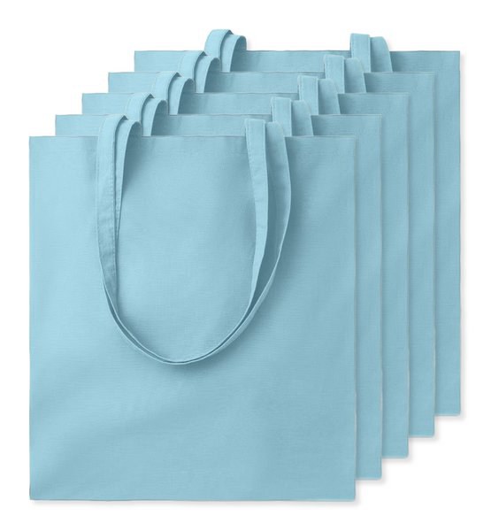Pack of 5 GiftRetail MO9268 - Baby Blue - COTTONEL COLOUR Eco-Friendly 140gsm Cotton Shopping Tote Bag
