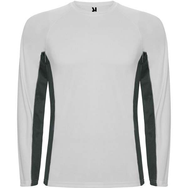 Roly CA6670 - White/Dark Lead - SHANGHAI L/S Long-sleeve technical raglan t-shirt with a combination of two polyester fabrics