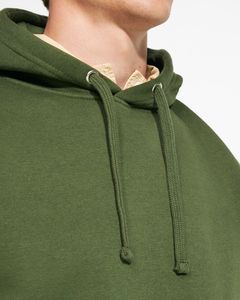 Two-colour hoodie with double fabric, contrasting adjustable drawcord, reinforced covered seams in collar and kangaroo style pocket.