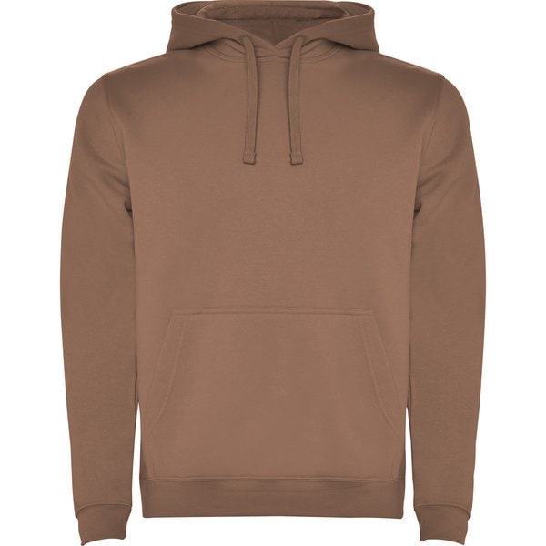 Two-colour hoodie with double fabric, contrasting adjustable drawcord, reinforced covered seams in collar and kangaroo style pocket.