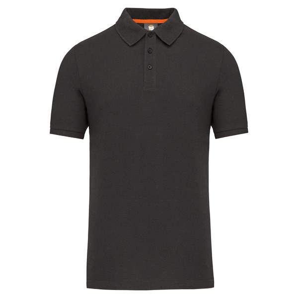 1x1 ribbed collar and cuffs with contrasting orange herringbone neck tape.