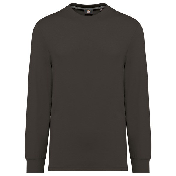 2x1 ribbed crew neckline with elastane and orange taped neck on the plain and marled colours and matching on the fluorescent colours.