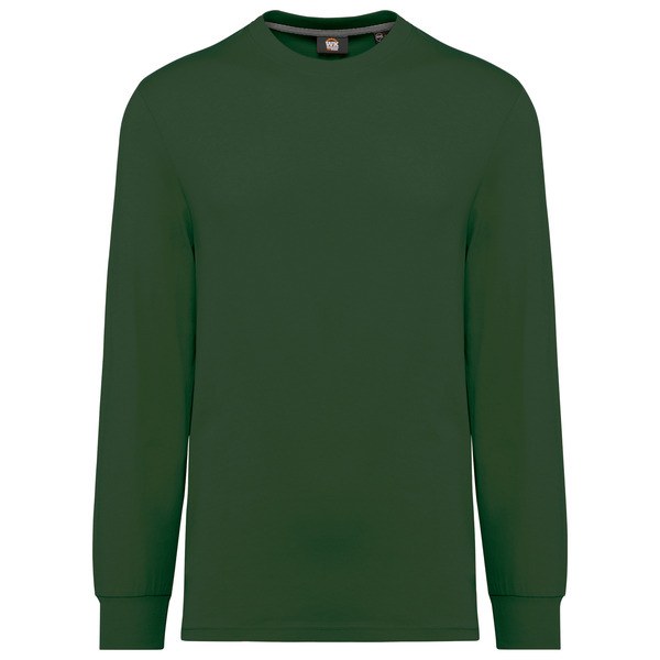 2x1 ribbed crew neckline with elastane and orange taped neck on the plain and marled colours and matching on the fluorescent colours.