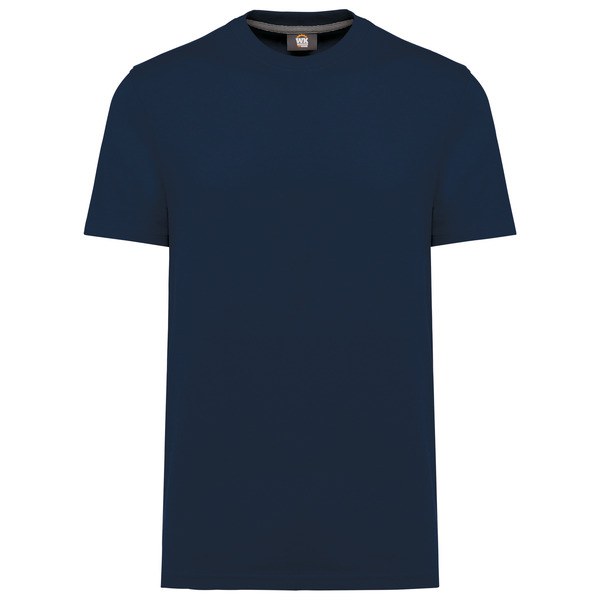 2x1 ribbed crew neckline with elastane and orange taped neck on the plain and marled colours and matching on the fluorescent colours.