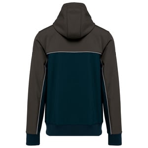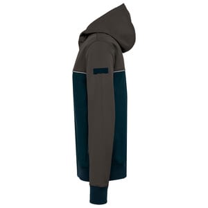 Contrasting piping between the two-tone parts of the garment (body and sleeves, front and back).