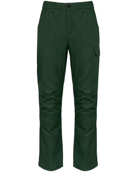 1 pocket with flaps and velcro fastening on the left when worn, 1 double open tool pocket on the right when worn, 2 back patch pockets, 2 knee pad pockets in matching colour with velcro and flap inside to support and adapt the knee pad.